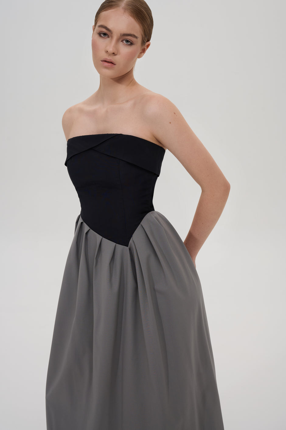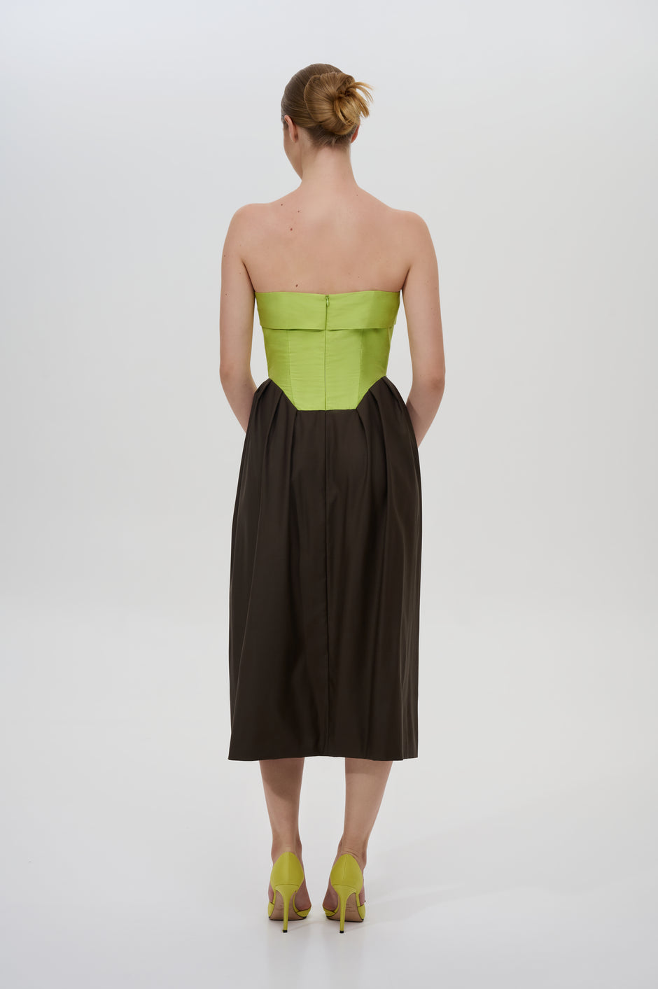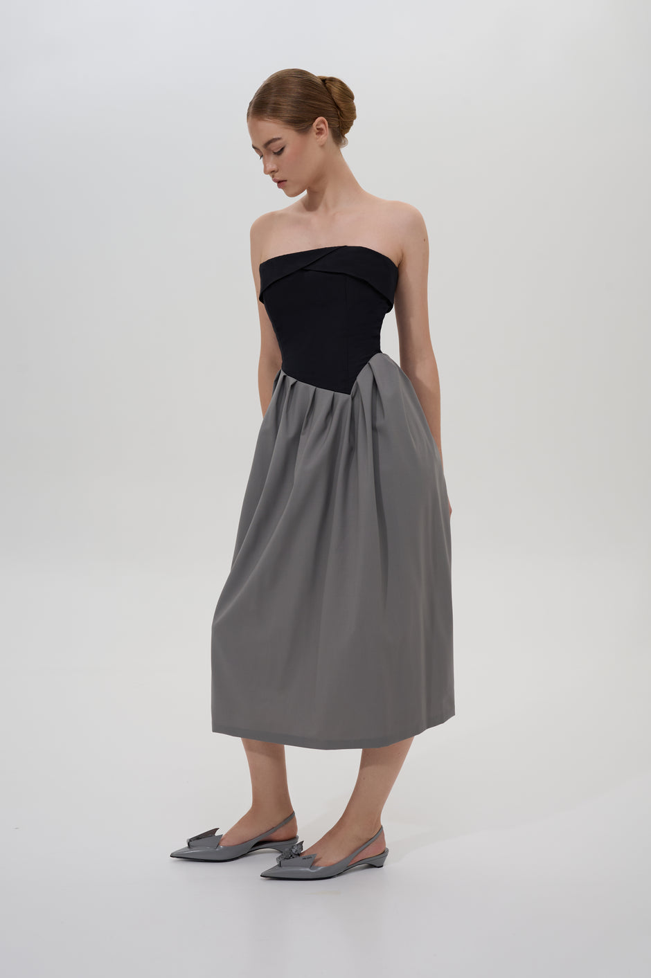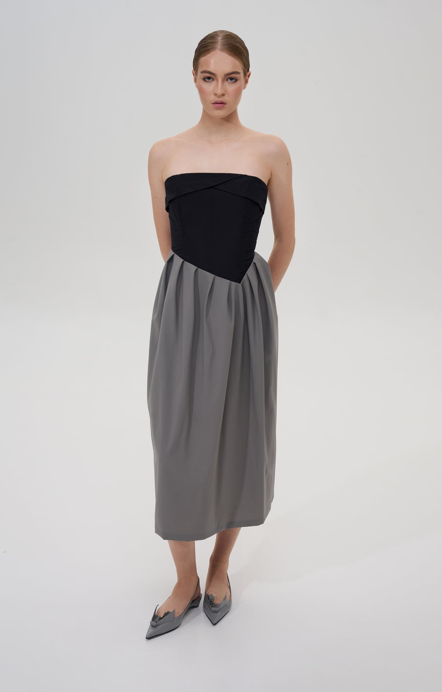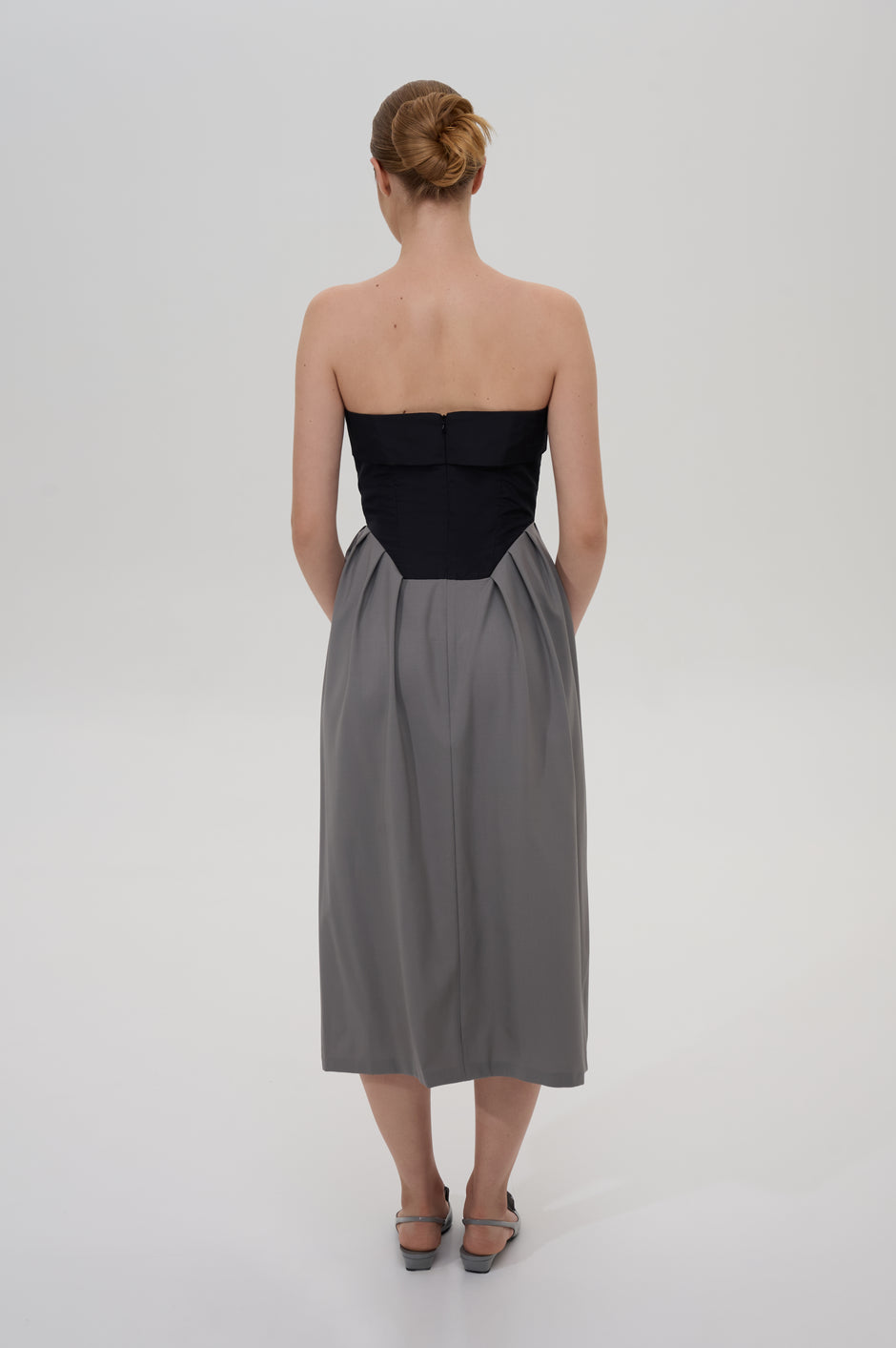 Pleated strapless midi dress