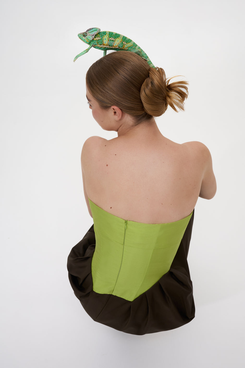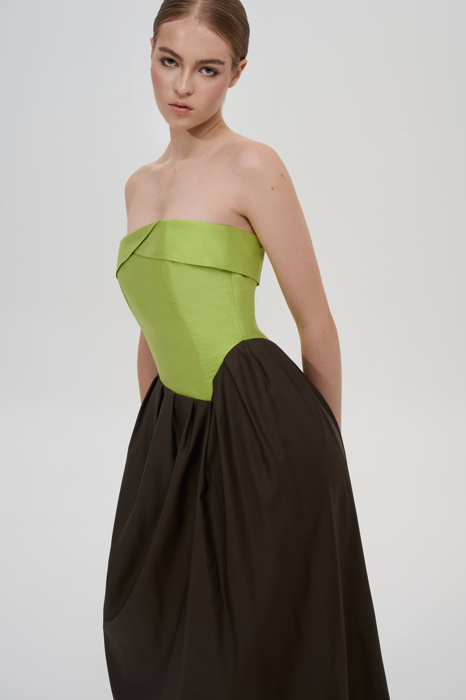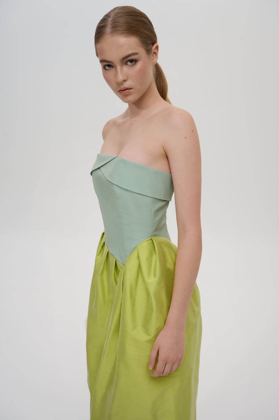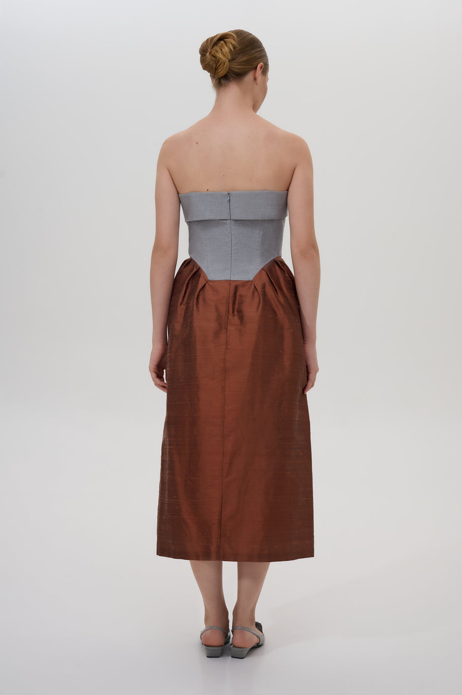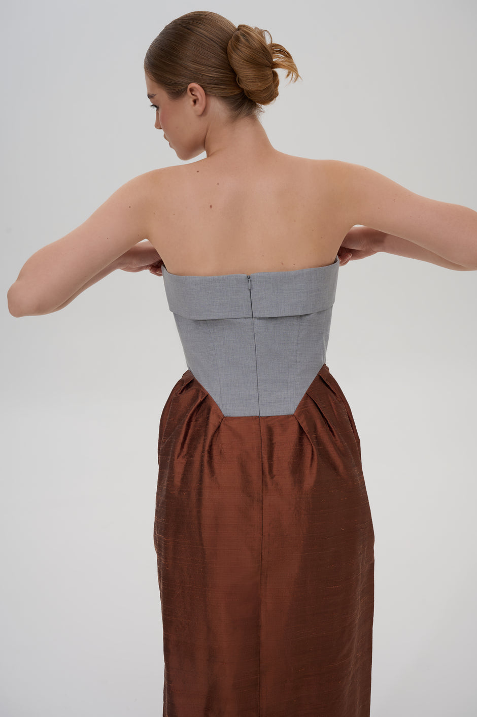 Pleated strapless midi dress